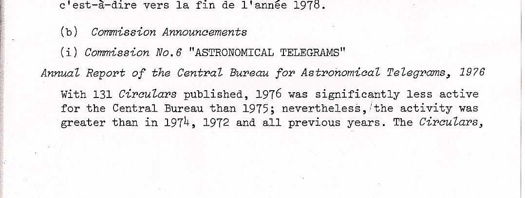 Bureau for Astronomical Telegrams (published in IAU Information Bulletins):