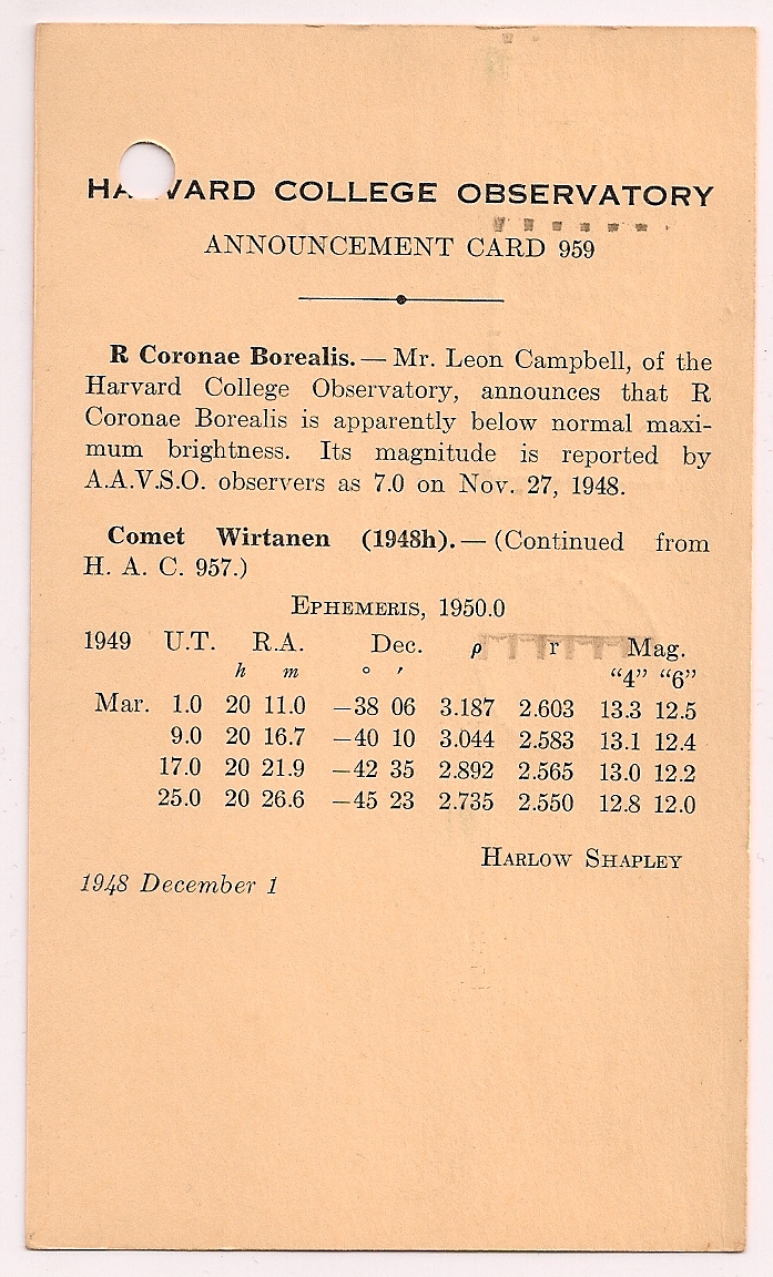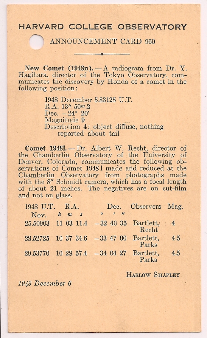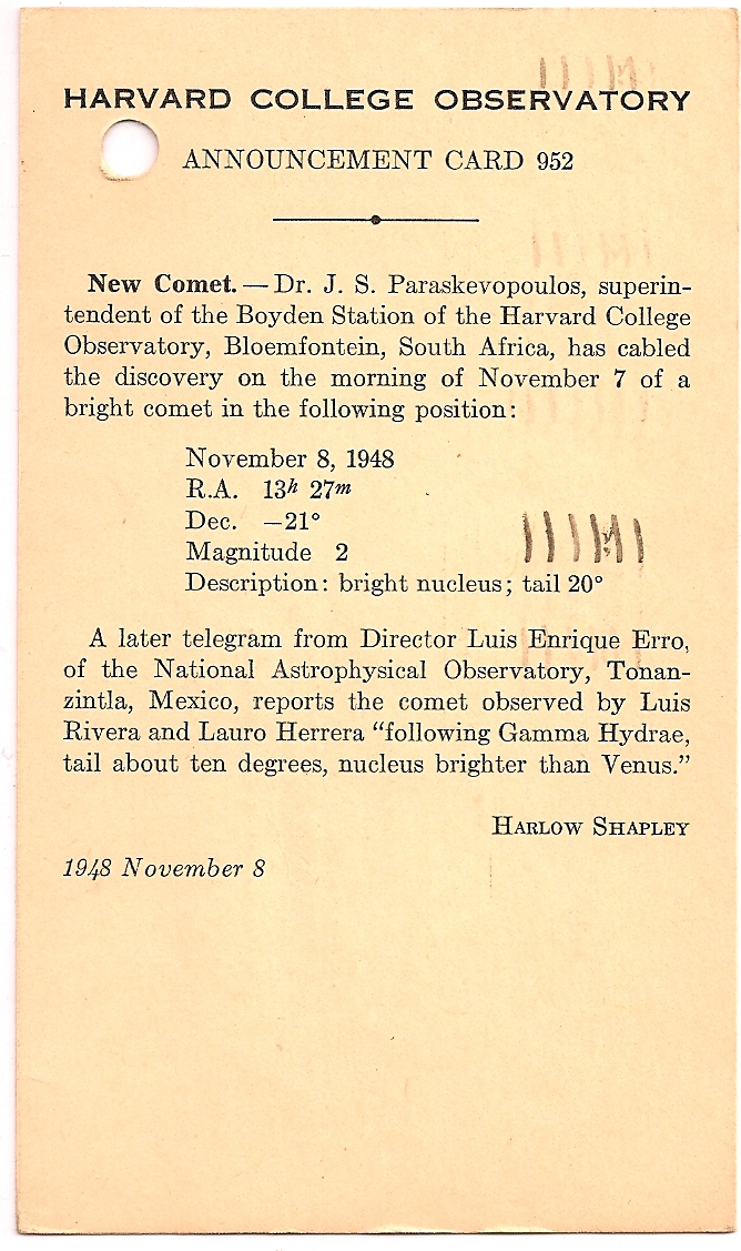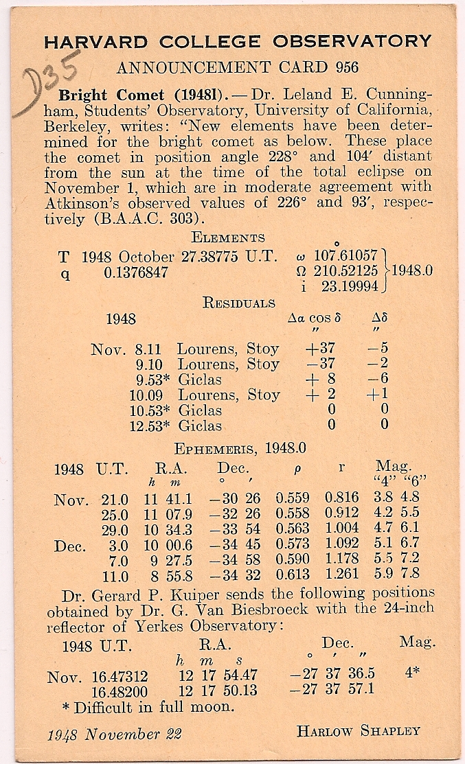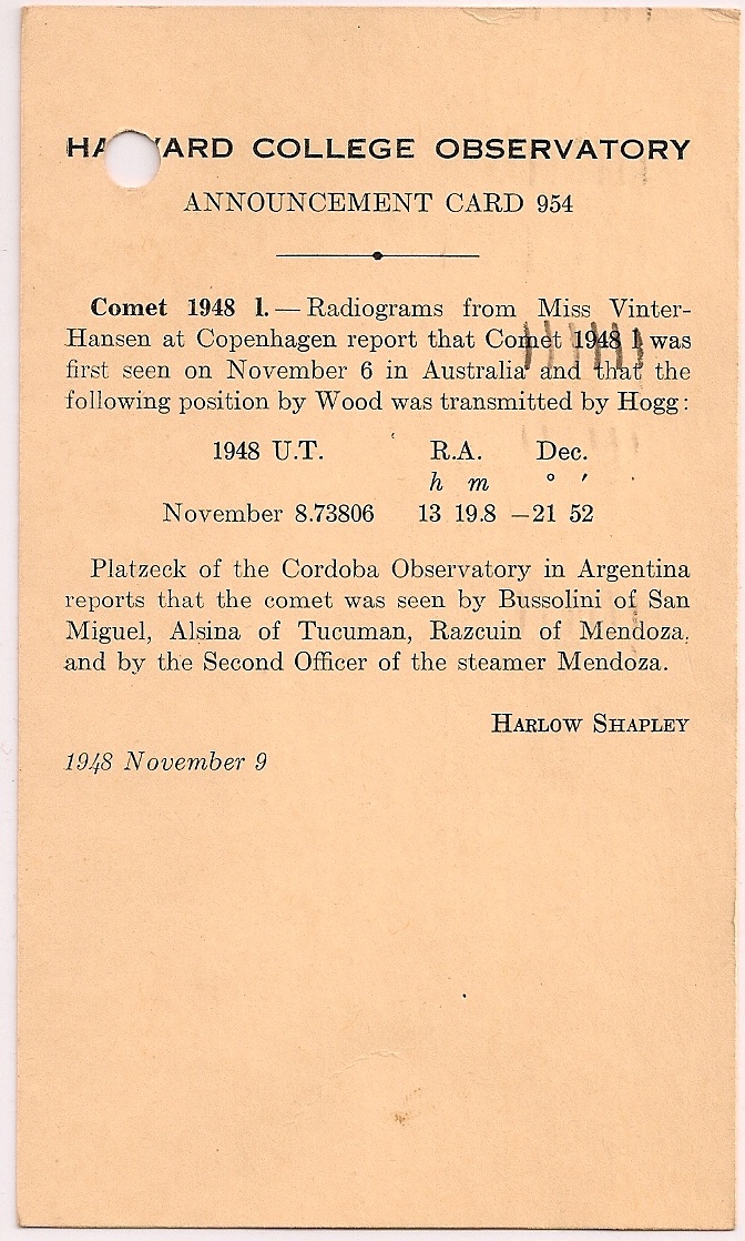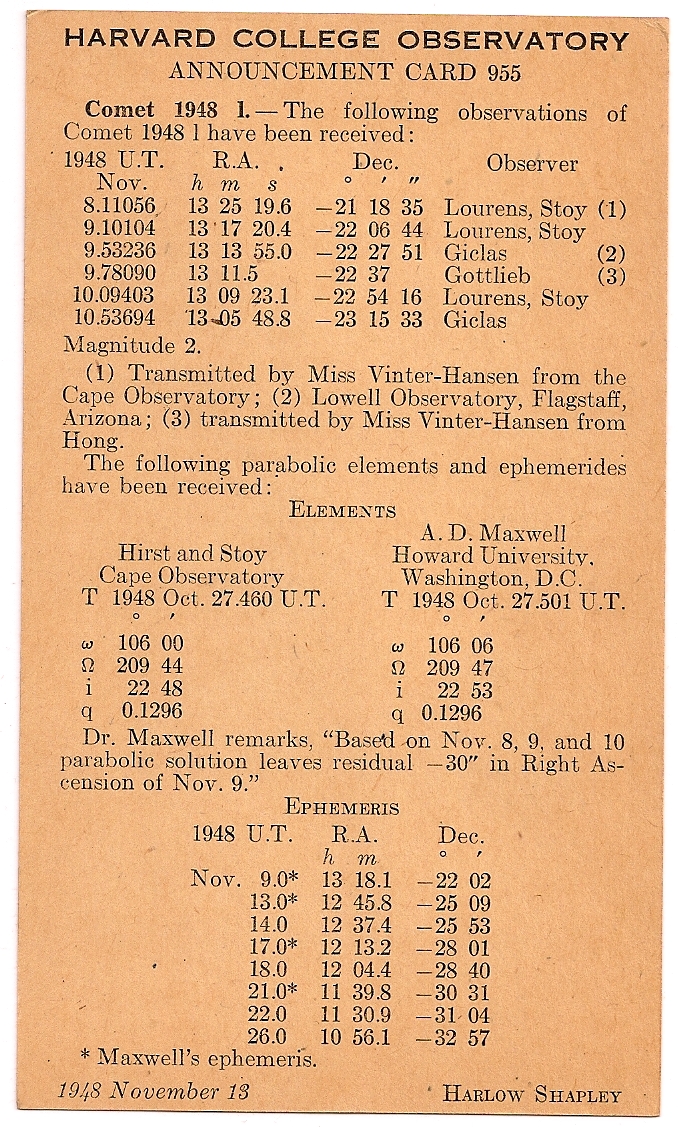 C/1947 X1 appears on HAC 863. The bright eclipse comet C/1948 V1