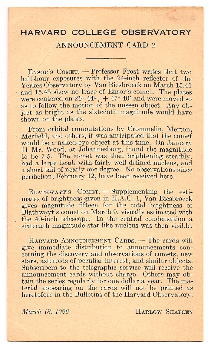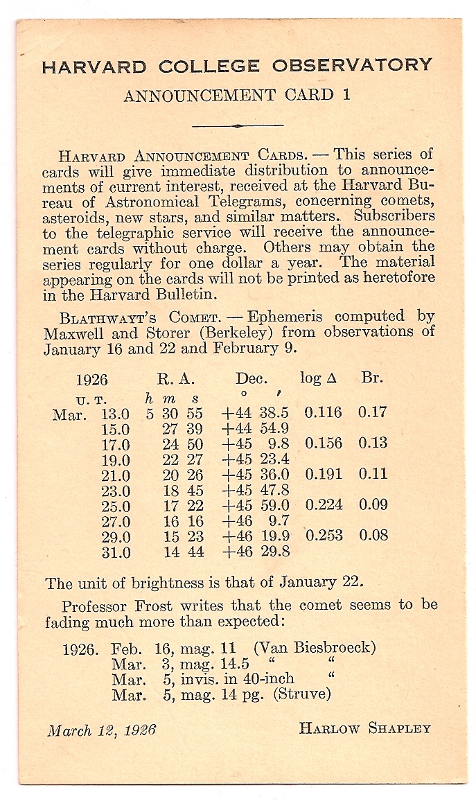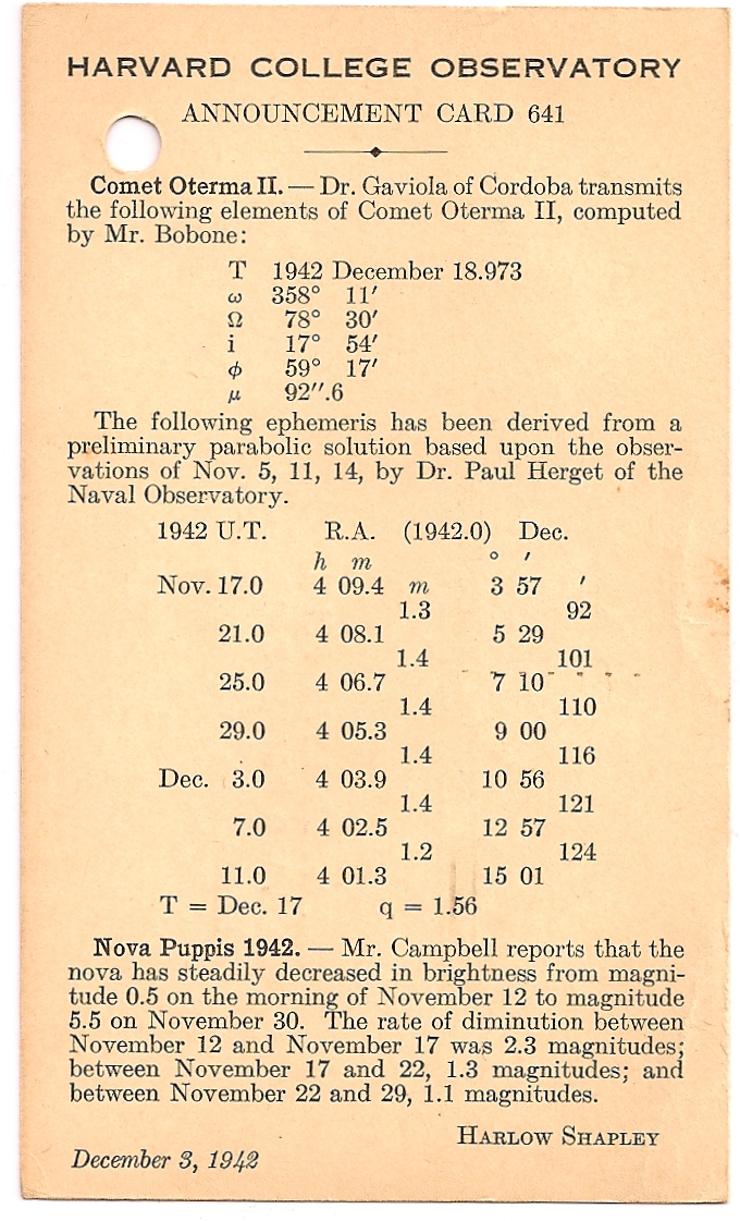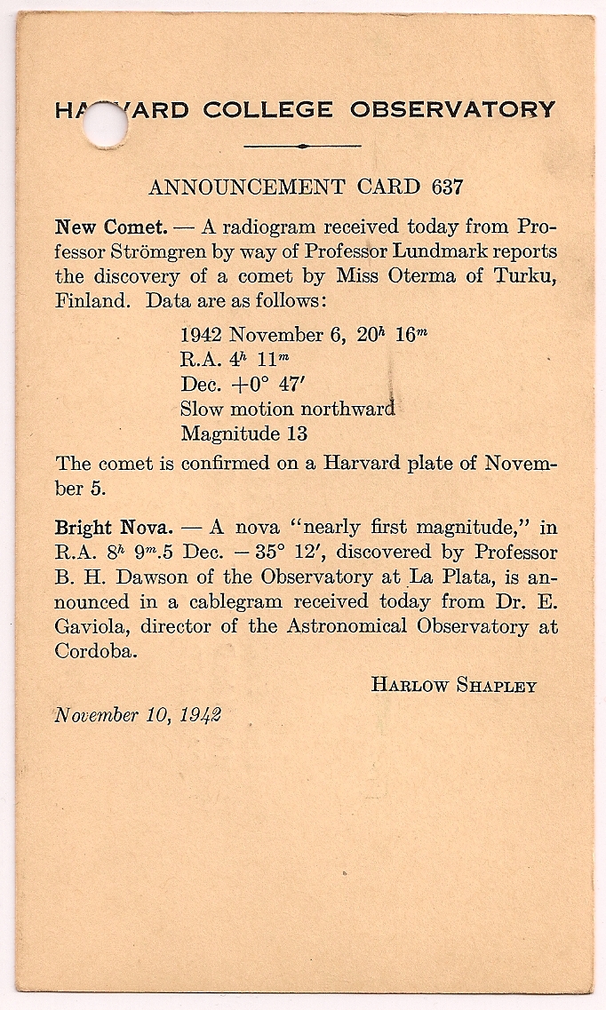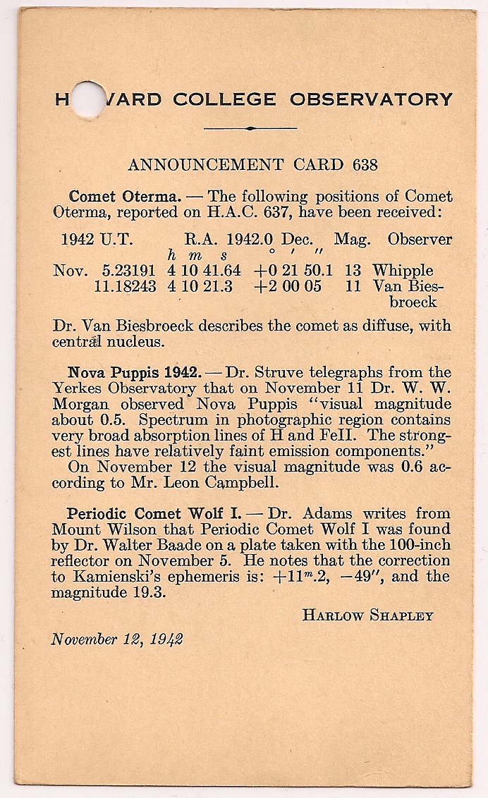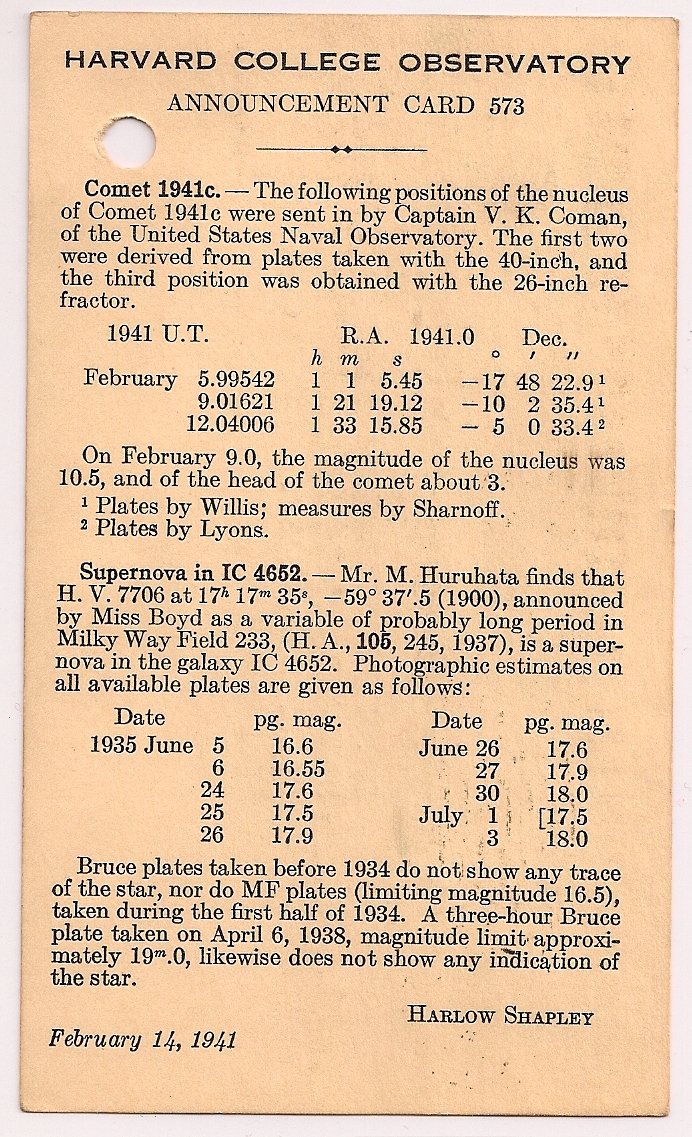 C/1947 X1 appears on HAC 863. The bright eclipse comet C/1948 V1