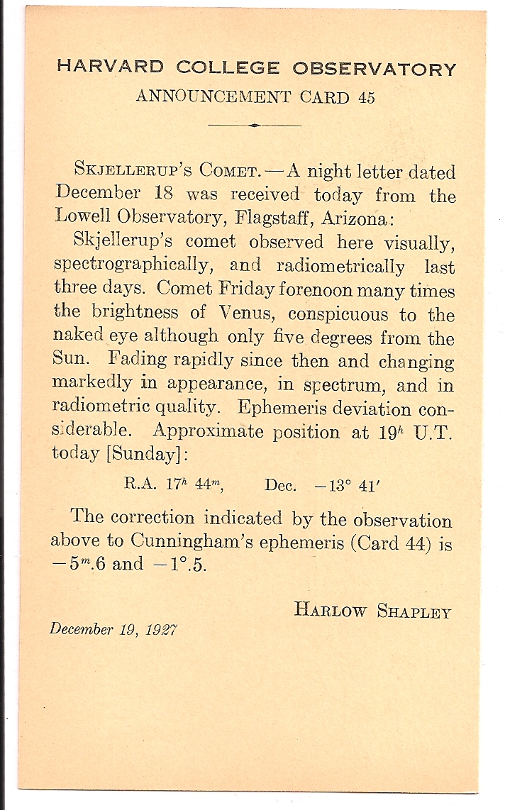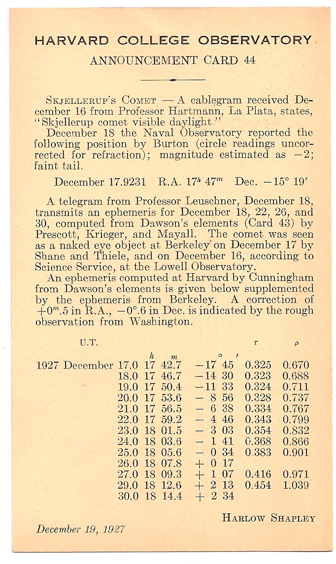 the bright, naked-eye daylight comet C/1927 X1 (Skjellerup-Maristany).
