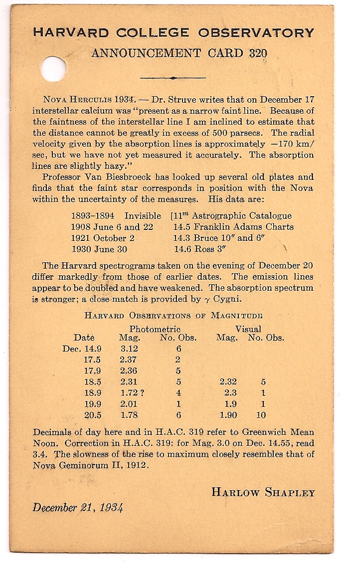 The bright nova DQ Her (which reached visual mag 1.5) appears on HACs 318-320.